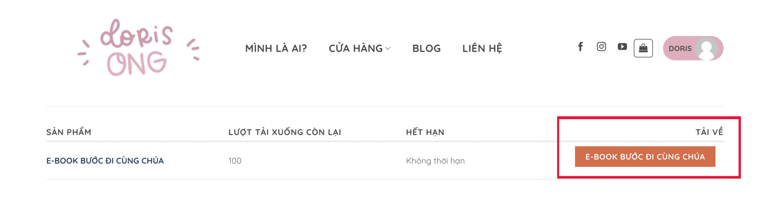 Sau khi bạn mua sản phẩm số trên DORISONG.CO và thanh toán thành công (LƯU Ý CÚ PHÁP CHUYỂN KHOẢN). Để tải sản phẩm về, bạn sẽ có 2 cách sau: