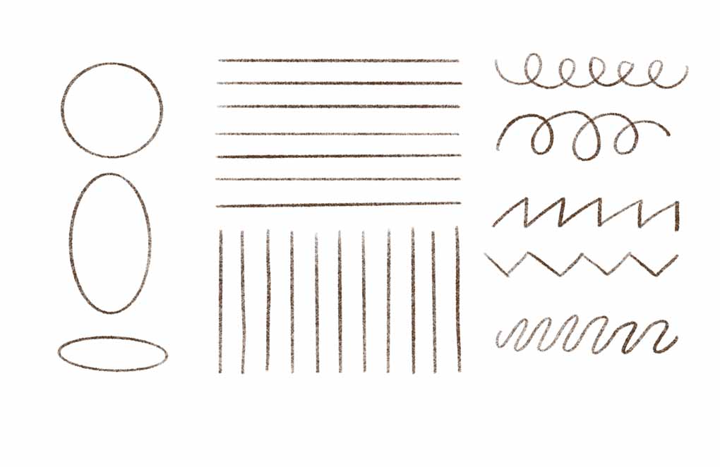 Trên tờ giấy trắng, hãy thả lỏng tay, vẽ thật nhiều đường tròn; trên một tờ khác, vẽ thật nhiều đường thẳng, trên tờ khác nữa là đường ziczac và gợn sóng.