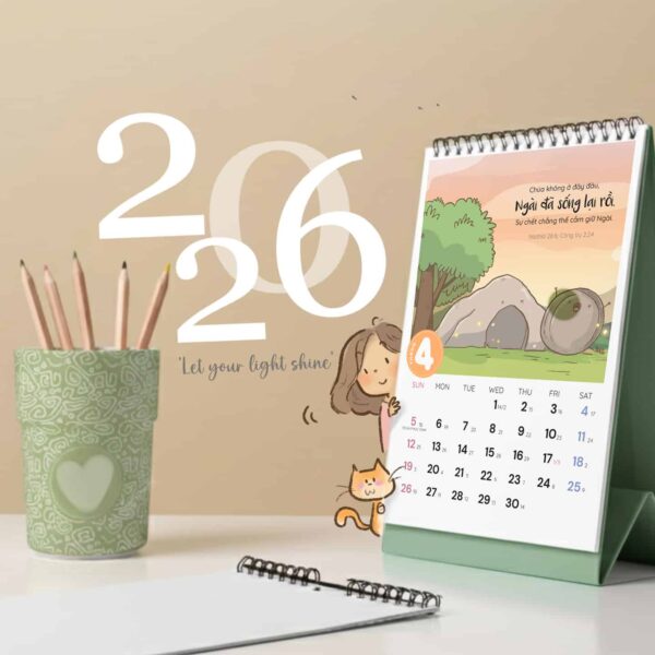 Bộ lịch nhắc bạn rằng ánh sáng của Chúa đang ở trong bạn, và mỗi ngày bạn được mời gọi để lan toả yêu thương – nhẹ nhàng, đơn sơ nhưng mạnh mẽ.