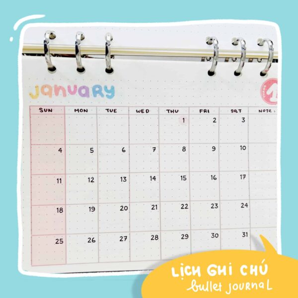 Mỗi tháng có minh hoạ Kinh Thánh, lời khích lệ, và ô ghi chú nhỏ để bạn đồng hành cùng Chúa trong hành trình năm mới.