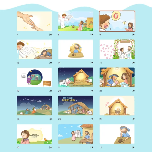 Có khi nào bạn muốn kể Câu Chuyện Giáng Sinh cho các bé hàng xóm, một lớp học nhỏ, hay lớp Trường Chúa Nhật, nhưng nhận ra hình ảnh trong sách khá nhỏ, các bé không thể quan sát hết cùng một lúc? Mình cũng từng trăn trở như vậy, và khi tìm kiếm hình ảnh trên mạng thì không tìm được hết các hình ưng ý.